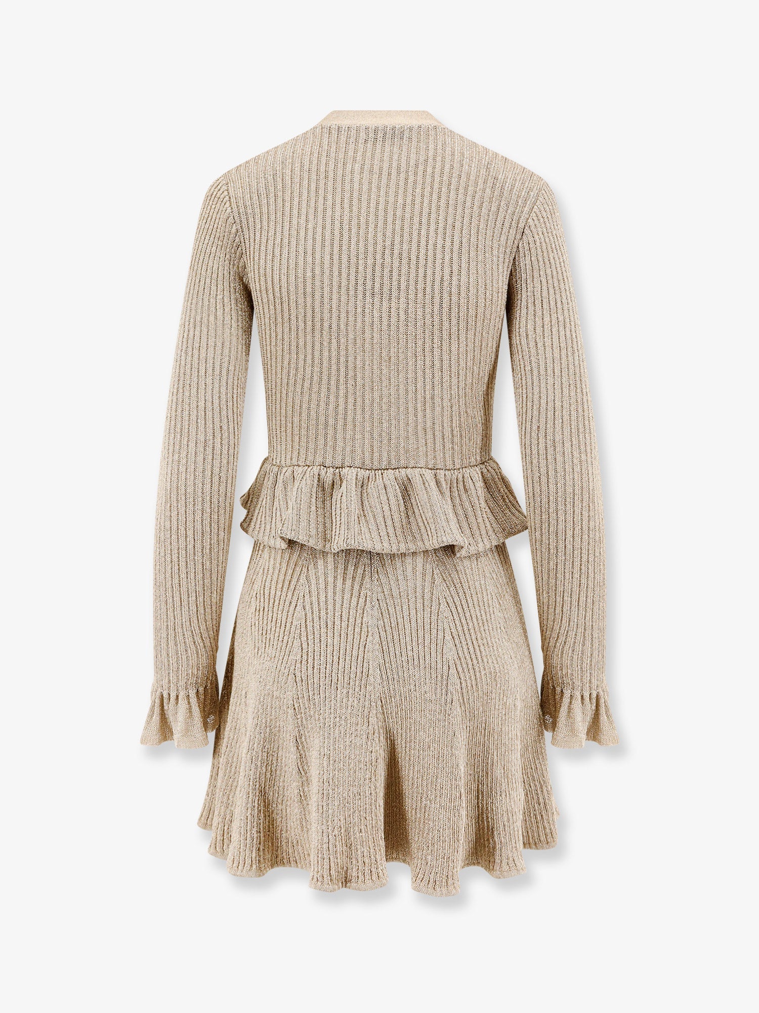 • V-neckline Button closure on the front Long sleeves Ruffle detail at the waist 65% viscose, 31% metallized fiber, 3% polyamide, 1% elastane SKU: AW25136SGDGOLD