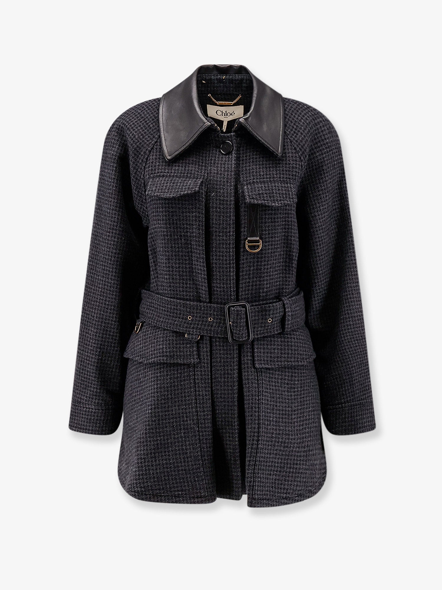 Chloe' Virgin Wool Trench With Leather Collar