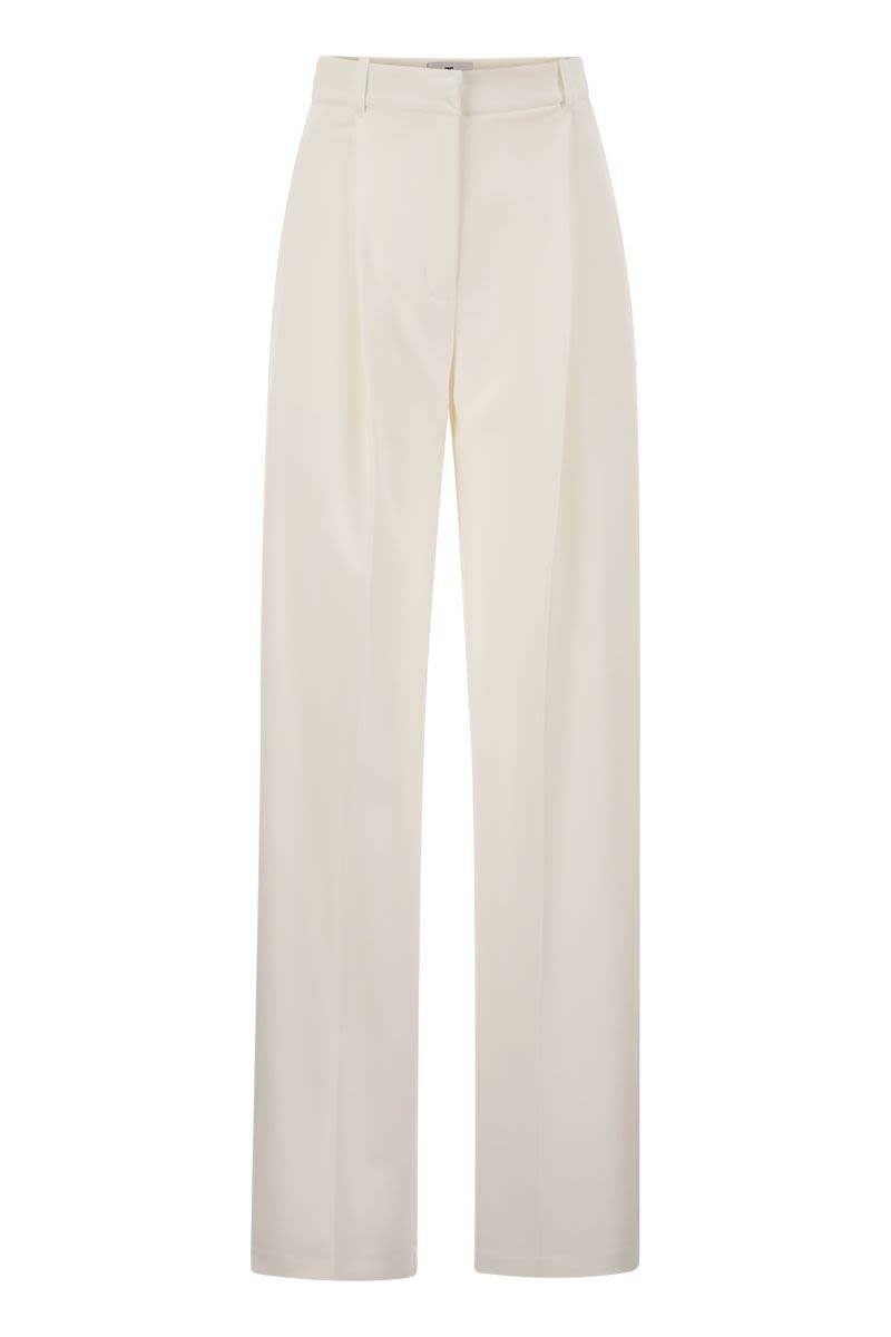 Trousers in lightweight stretch crepe. The tailored construction is given by the wide darts at the front and the pre-shaped inner band. Satin details cover the front belt loops and the back welts on the buttoned pockets. Straight fit. Part of the essential collection, to build the perfect wardrobe. - satin inserts - hip pockets - matching buttoned back welts - hook-and-eye closure designer id: pa08151e2 360